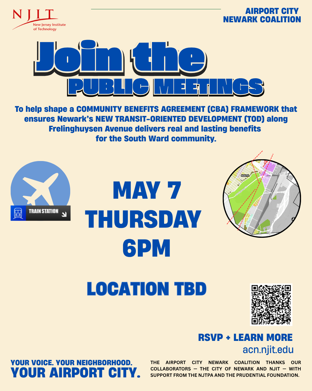 To help shape a COMMUNITY BENEFITS AGREEMENT (CBA) FRAMEWORK that ensures Newark’s NEW TRANSIT-ORIENTED DEVELOPMENT (TOD) along Frelinghuysen Avenue delivers real and lasting benefits for the South Ward community.
